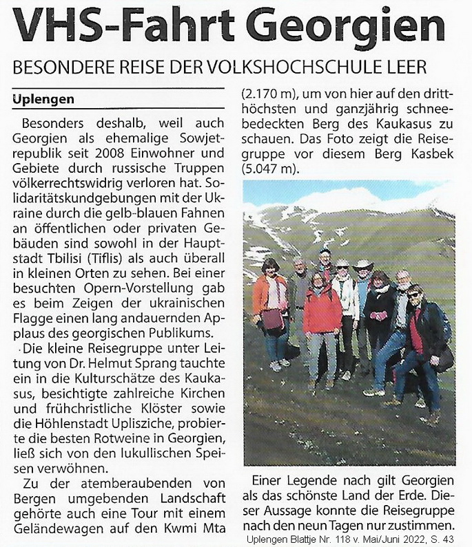 Auch die Ostfriesen-Zeitung berichtete am 12. Mai 2023 in der Beilage "Menschen und Vereine" (Seite 4) der online-Ausgabe über diese Studienfahrt mit der Überschrift "Ostfriesen auf Studienreise im Baltikum".